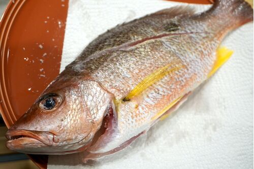 水あげされたばかりのクロホシフエダイが売られていたので買ってきました。なんとお値段400円で買えましたー 見てのとおり、背中の後ろのあたりに黒い星のような模様があるためクロホシフエダイとよばれる魚です。 非常に美味しいとされる魚。 刺身よりも焼…